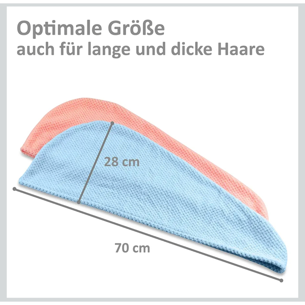 Met een lengte van 70 centimeter is de tulband ideaal voor lang haar. Verkrijgbaar in de kleuren blauw en roze, passen deze effen tulbanden bij elke stijl. Lichtgewicht en goed verpakt in een handige reistas, zijn ze perfect voor zowel thuisgebruik als onderweg.