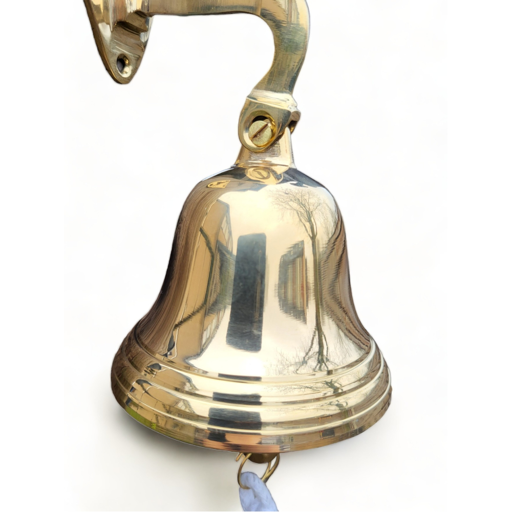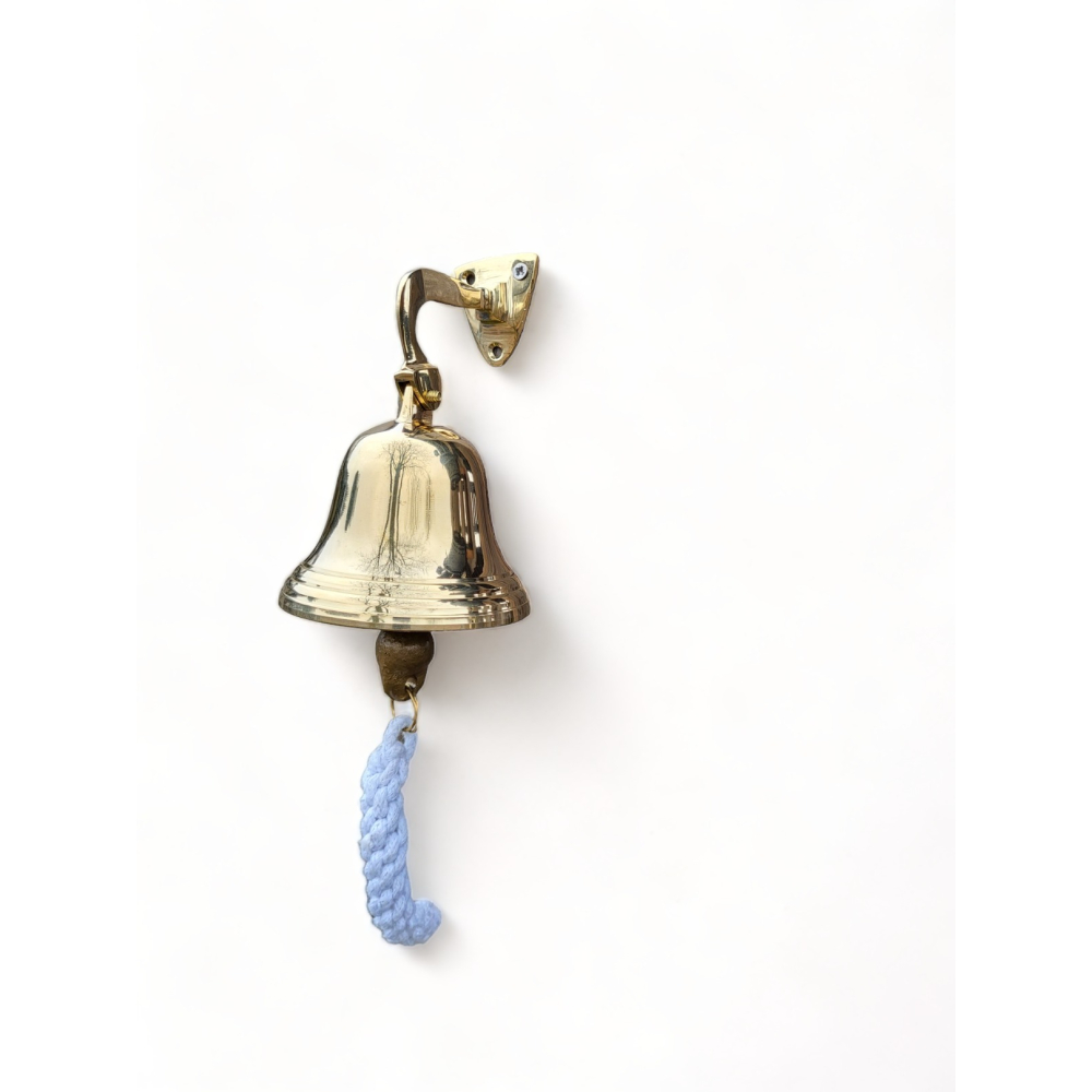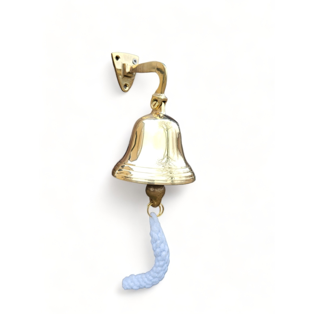 Gemaakt van massief metaal, voorzien van klepel en een scheepstouw.