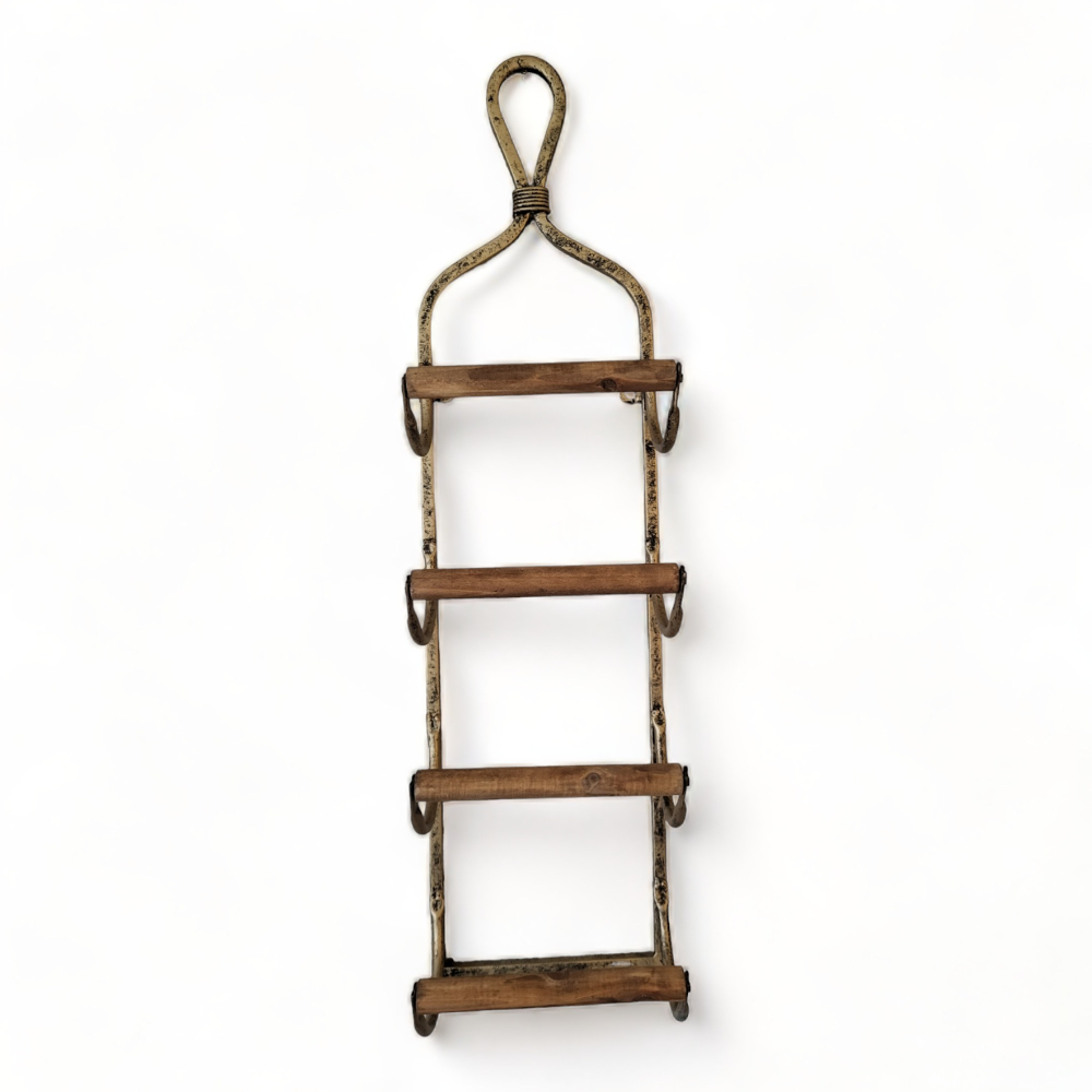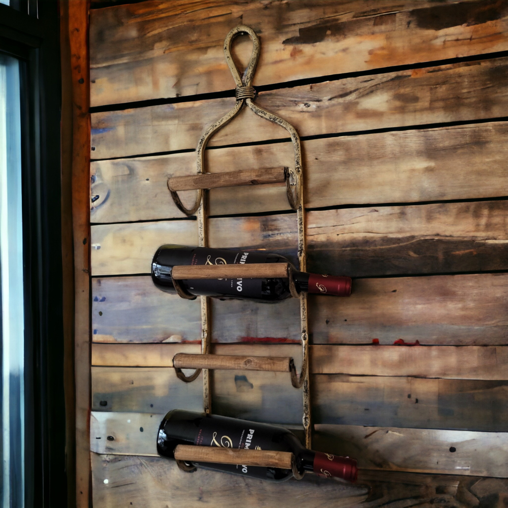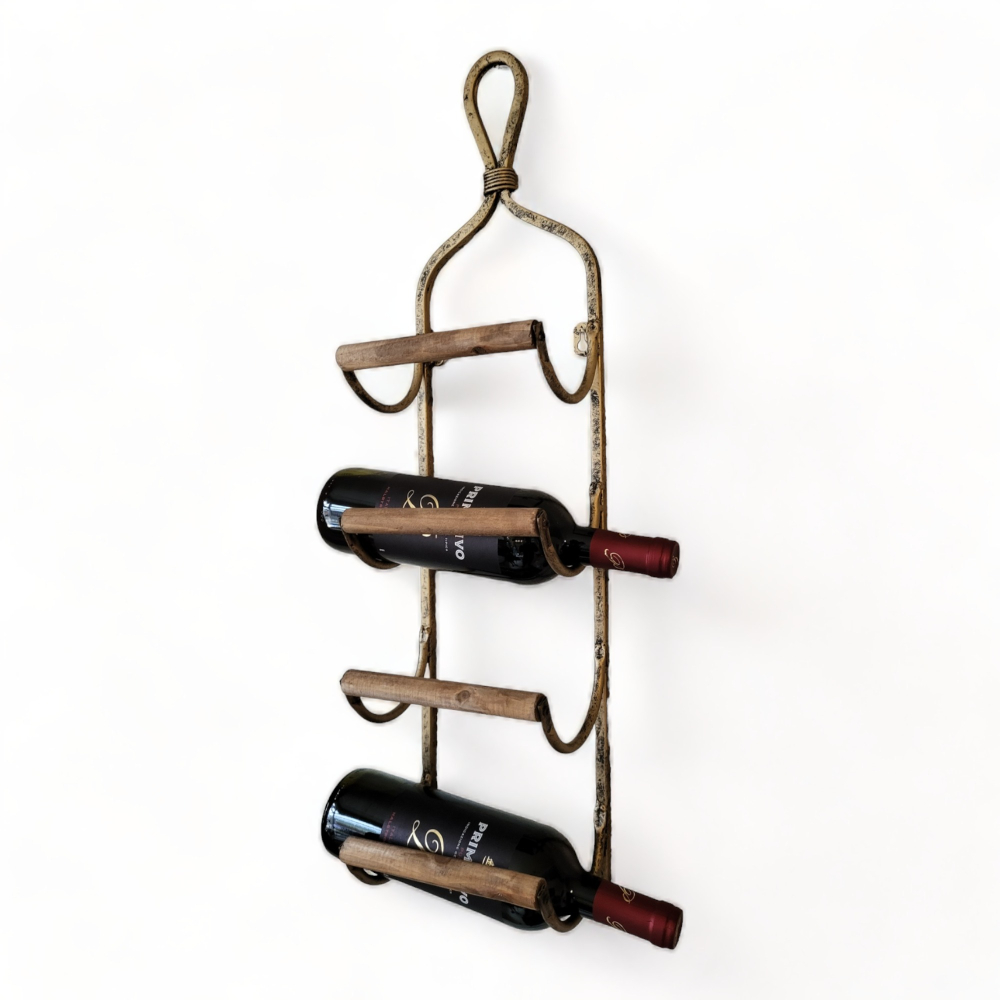 Dit mooie wijnrek biedt ruimte aan maar liefst 4 flessen, waardoor het ideaal is voor het organiseren van je favoriete wijnen. Het rek kan eenvoudig aan de wand worden opgehangen.
